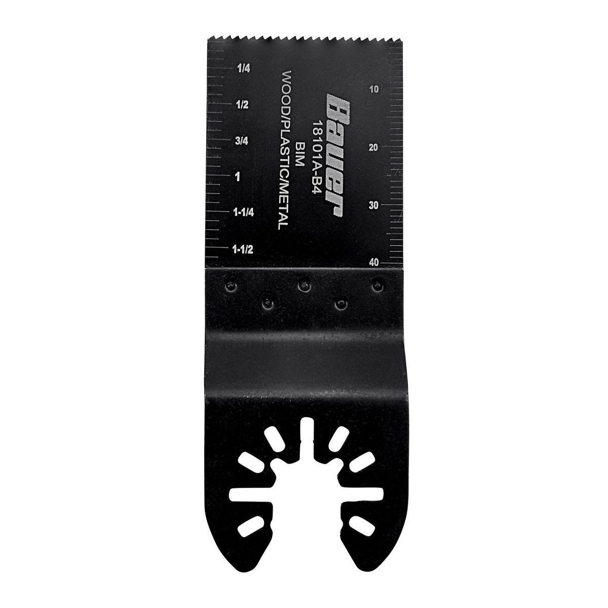 La hoja de sierra bimetal BAUER modelo 18101A-B4 está diseñada para herramientas oscilantes multiusos, ofreciendo cortes precisos a ras y de inmersión en una amplia variedad de materiales como metal, madera, plástico y drywall. Su diseño compensado permite realizar cortes al ras en superficies difíciles, mientras que los dientes bimetal extra afilados garantizan cortes rápidos y una mayor durabilidad. Cuenta con una guía de profundidad grabada con láser para realizar cortes de inmersión exactos de hasta 1-1/2 pulgadas. Es compatible con las principales marcas de herramientas oscilantes como BOSCH, DEWALT, DREMEL, FEIN, RIDGID, ROCKWELL, PORTER CABLE, así como con las propias BAUER, Hercules y Chicago Electric. Ideal para trabajos de detalle, remodelación e instalaciones donde se requiere precisión y versatilidad.