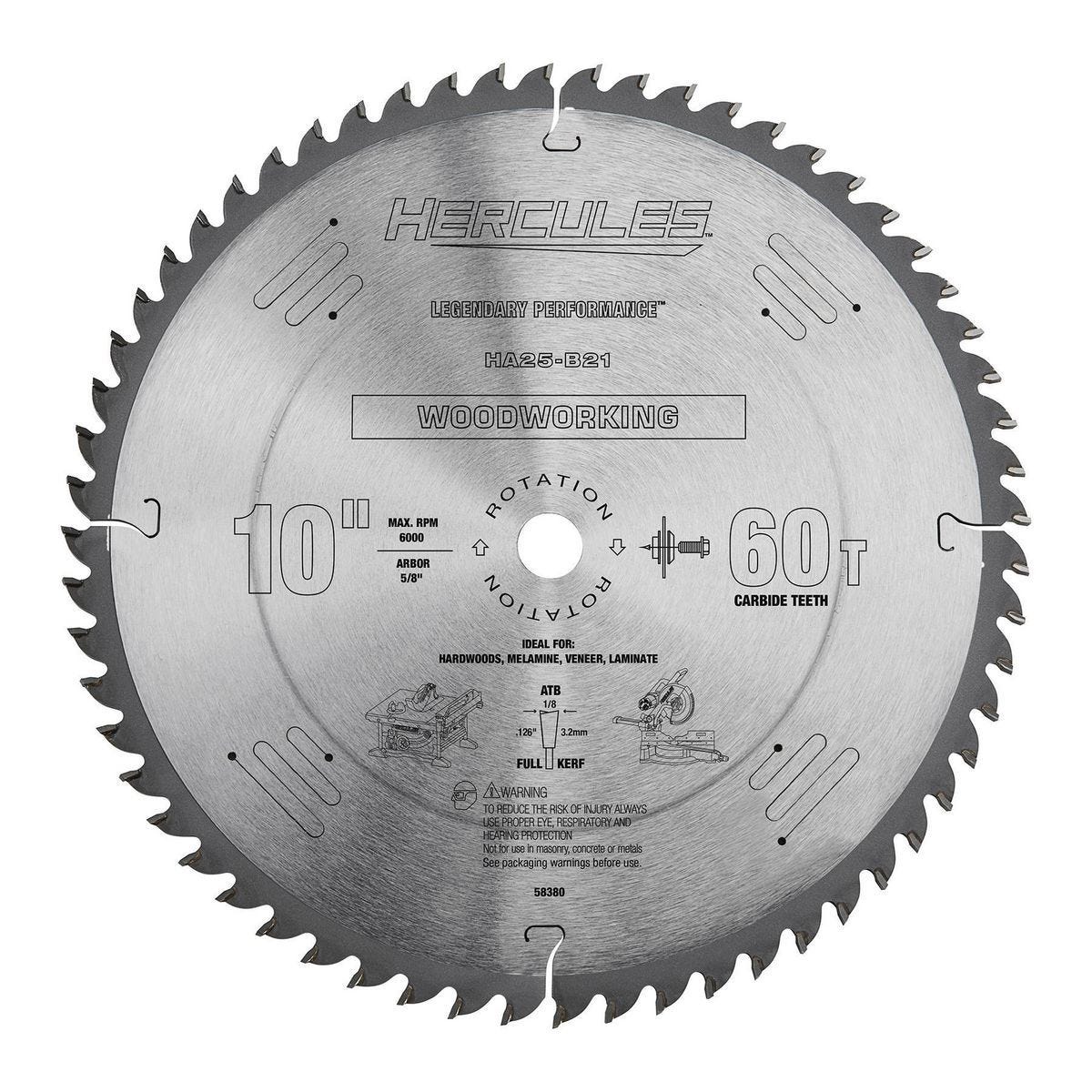 Hoja de sierra circular para carpintería de 10 pulgadas, 60 dientes | 58380