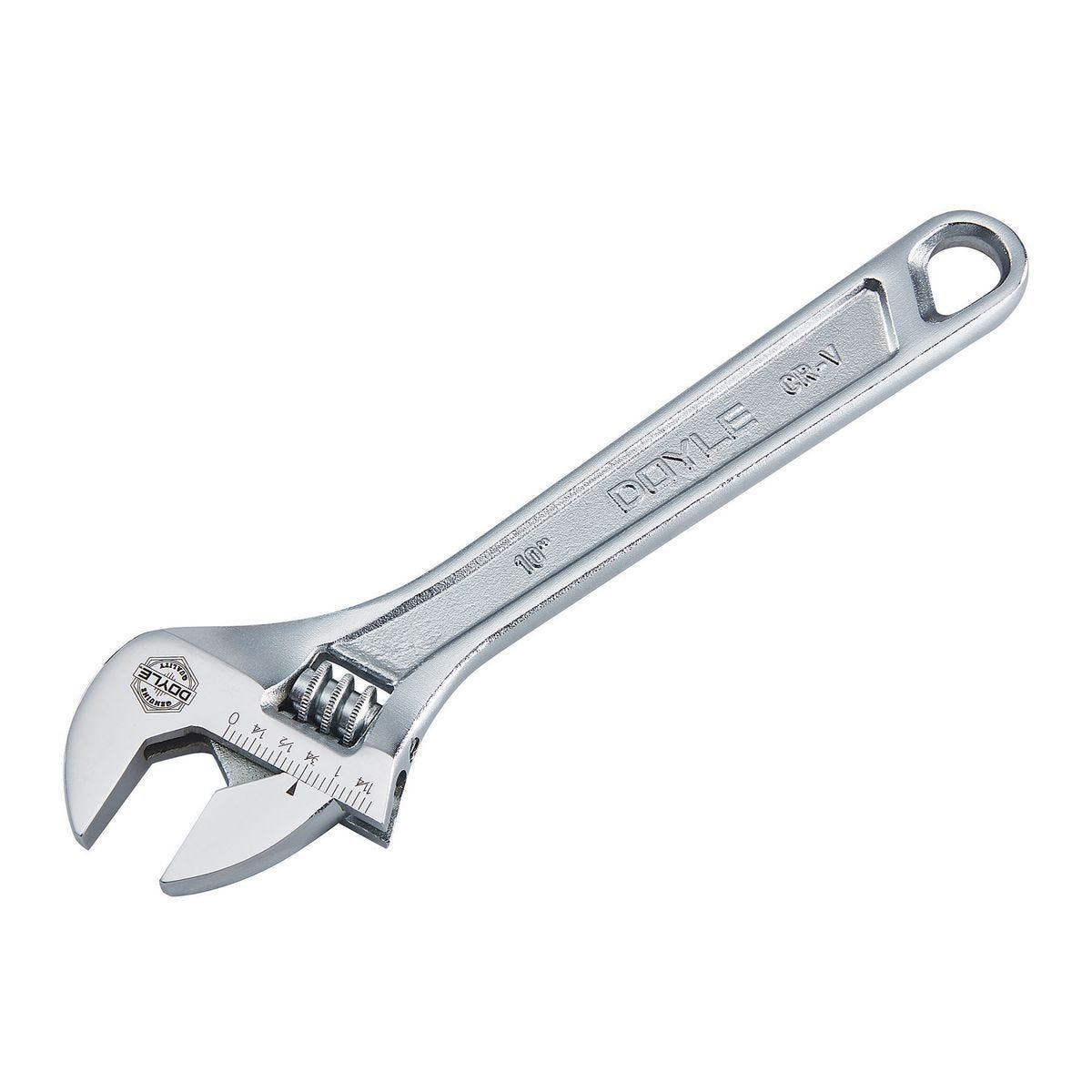 Llave ajustable DOYLE de 10 pulgadas, de acero cromo-vanadio con acabado anticorrosivo. Precisión y agarre seguro para trabajos profesionales. Modelo 56657.