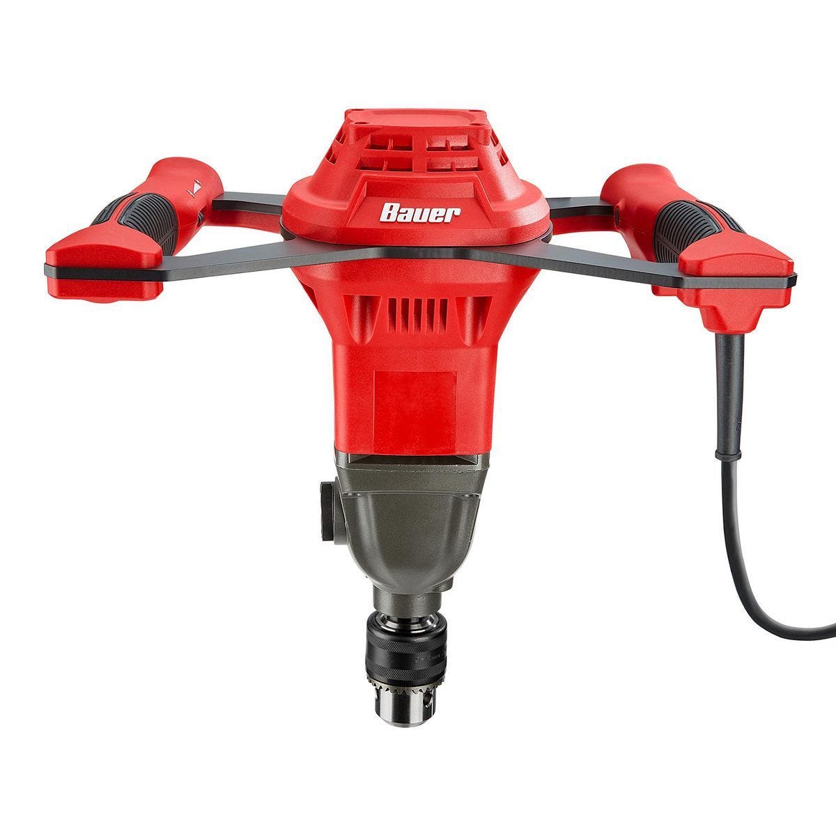 Mezclador de lodo BAUER 2351E-B de 12 amperios con velocidad variable hasta 800 RPM. Perfecto para mezclar mortero, pintura espesa y lechada. Modelo 70556.