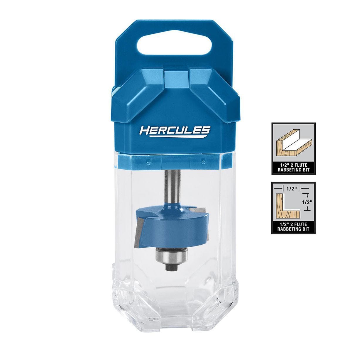 Fresa de rebaje HERCULES de 1/2 pulgada con filos de carburo de cobalto y recubrimiento antiadherente. Ideal para cortes limpios en madera dura y blanda.…