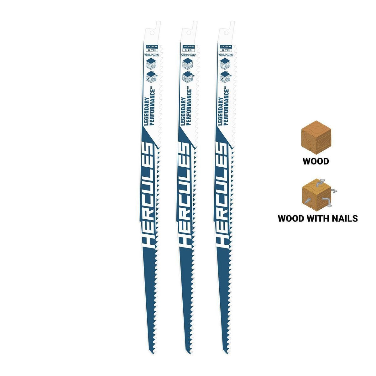 Juego de 3 hojas para sierra reciprocante HERCULES, 12 pulgadas y 6 TPI para madera y demolición. Recubrimiento no adherente y construcción bi-metal para mayor…