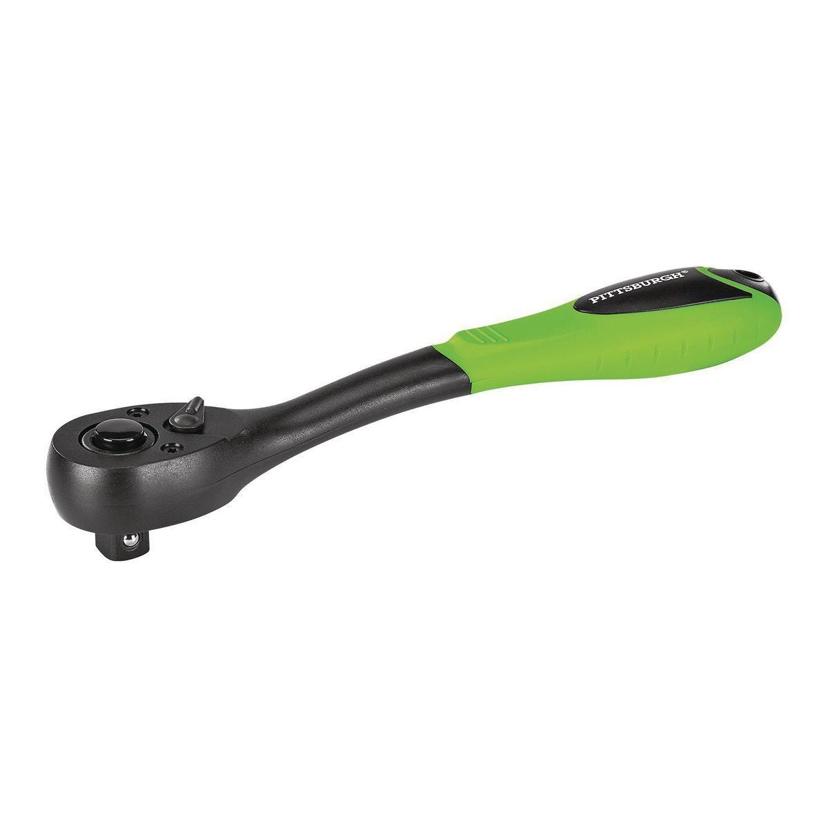 Llave de trinquete PITTSBURGH de 1/2 pulgada con mango compuesto no conductor. Ideal para mecánica automotriz, con mecanismo de 72 dientes y liberación rápida.