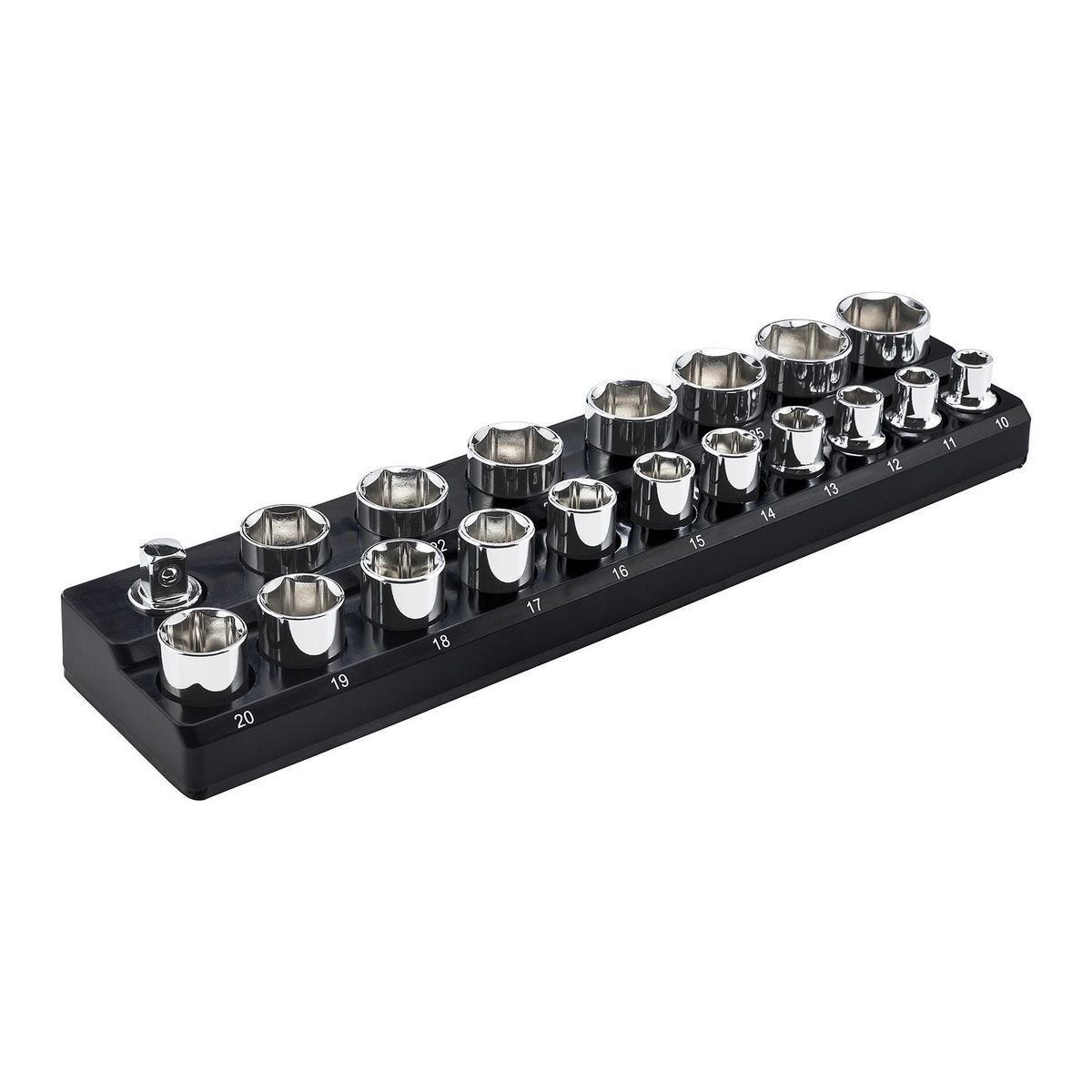 Porta dados magnético U.S. GENERAL para 19 piezas métricas de 1/2″. Organiza y accede rápidamente a tus dados con su base magnética potente y recubierta.
