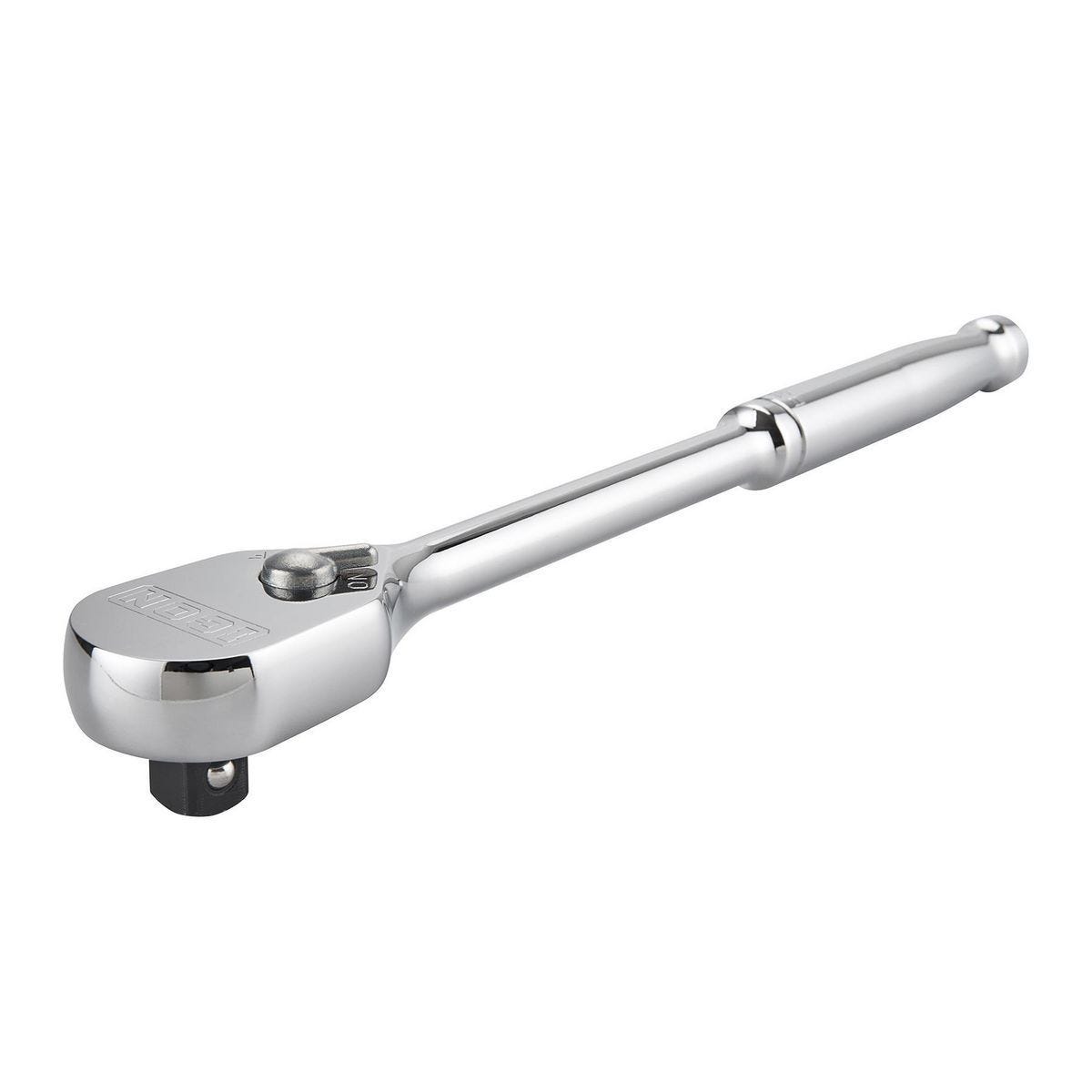 La llave de carraca profesional ICON R1QR de 1/2 pulgada es una herramienta esencial para mecánicos y técnicos que trabajan en espacios reducidos. Su diseño de cabeza de perfil bajo permite un acceso fácil a áreas de trabajo estrechas y apretadas. El mecanismo de engranaje de 90 dientes proporciona un arco de giro de solo 4 grados, ofreciendo mayor precisión y maniobrabilidad en lugares complicados. Fabricada en acero cromo-vanadio con un acabado pulido en cromo, garantiza una resistencia superior a la corrosión y es fácil de limpiar. El mango ergonómico de metal reduce la fatiga de la mano y mejora el agarre antideslizante, incluso durante sesiones prolongadas. Ideal para trabajos automotrices, de maquinaria y mantenimiento industrial donde se requiere durabilidad y alto torque. Número de parte 56340.