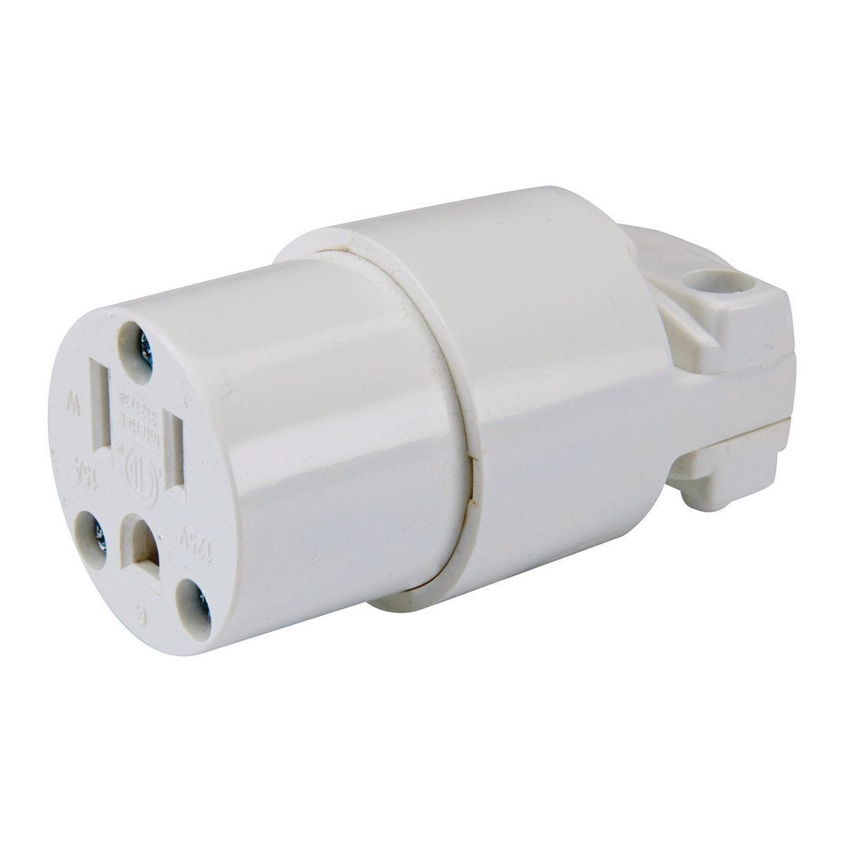 Conector hembra industrial Vanguard de 125V y 15 Amp (NEMA 5-15R). Reemplaza enchufes dañados en cables de extensión con seguridad y durabilidad certificada…