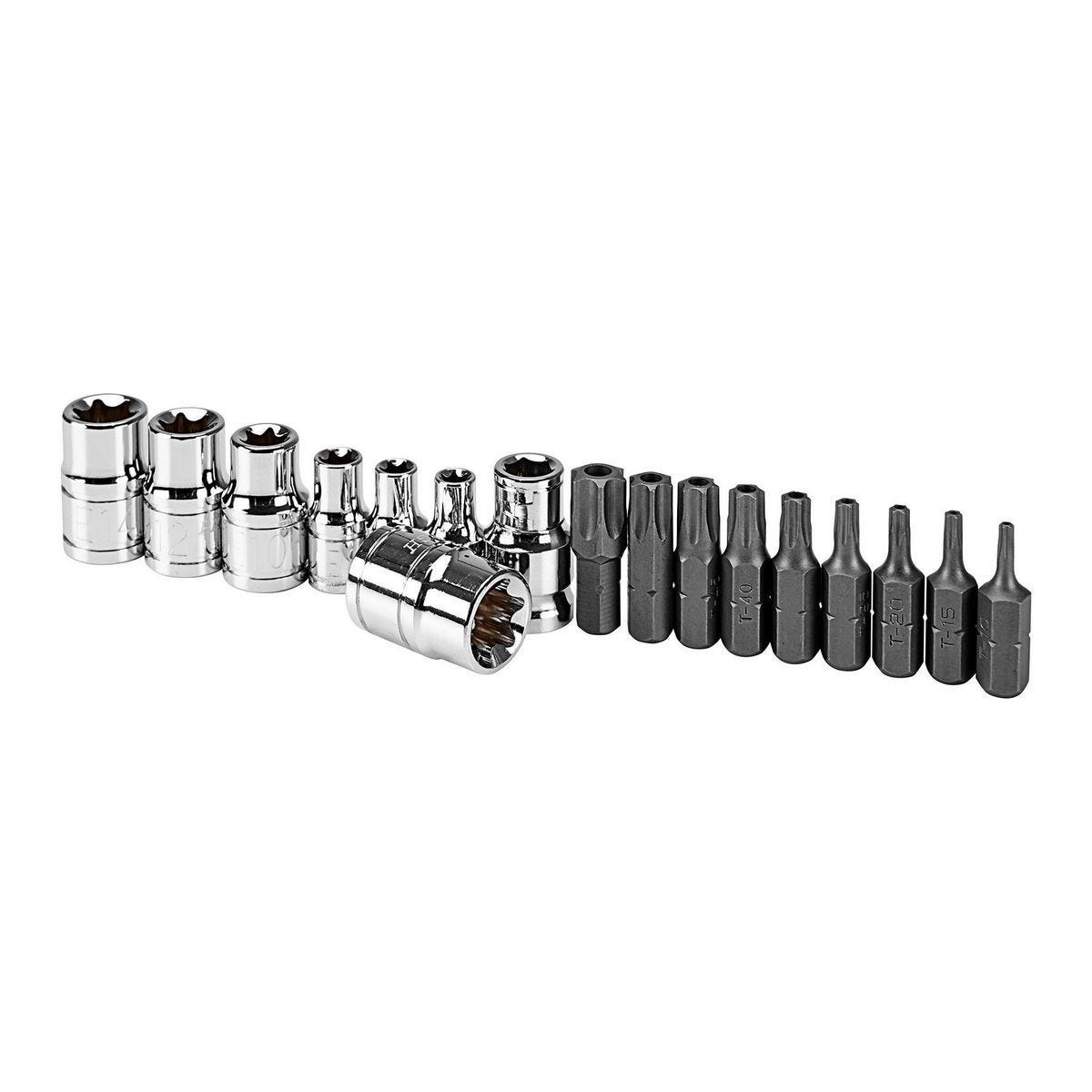 Juego de 17 piezas Pittsburgh con dados y puntas estrella (Torx) para 1/4 y 3/8 de pulgada. Ideal para mecánica automotriz. Fabricado en acero al cromo-vanadio…