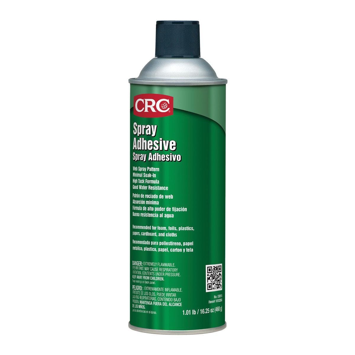 Adhesivo en spray industrial CRC de 16.25 oz. Fórmula de alta adherencia y resistencia al agua para espuma, plásticos, cartón y más. Modelo 93792.