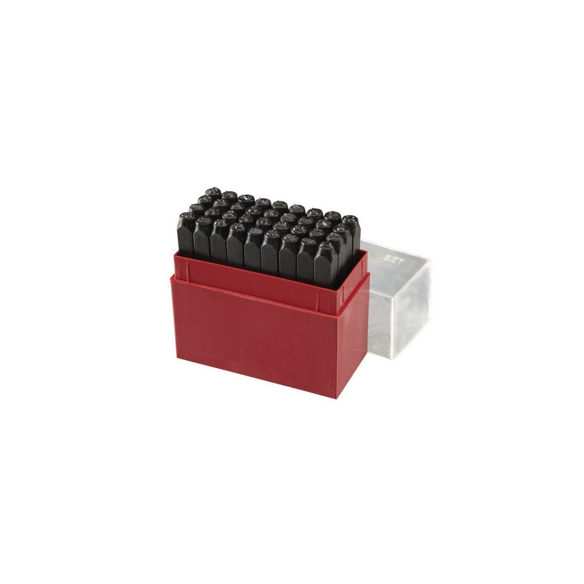 Juego de troqueles de acero PITTSBURGH de 36 piezas para marcar madera y metal. Caracteres de 1/8″, duraderos para miles de usos. Incluye estuche organizador.