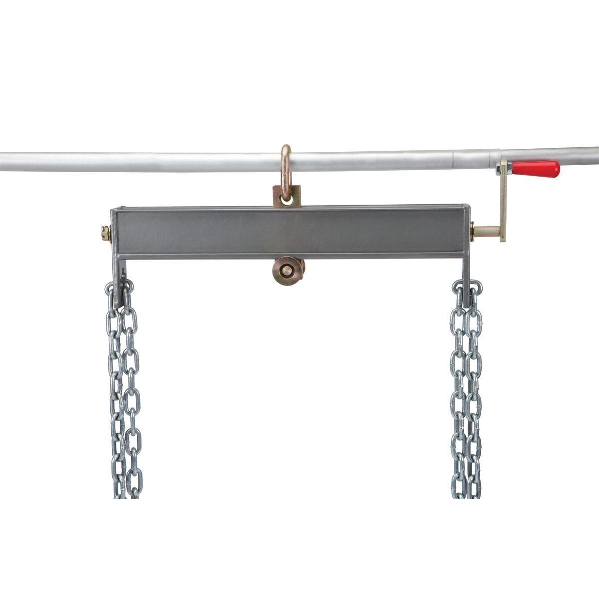 Nivelador de carga PITTSBURGH de 2 toneladas para extraer e instalar motores. Construcción de acero resistente, incluye cadenas y soporta 4000 lb. Modelo 60659.
