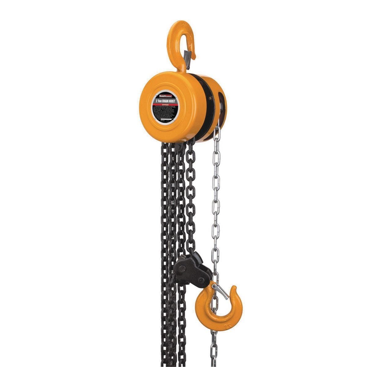 Polipasto manual HAUL-MASTER de 2 toneladas para levantar 4000 lb. Con freno de carga mecánico y cadena de acero grado 80. Ideal para talleres e industria.