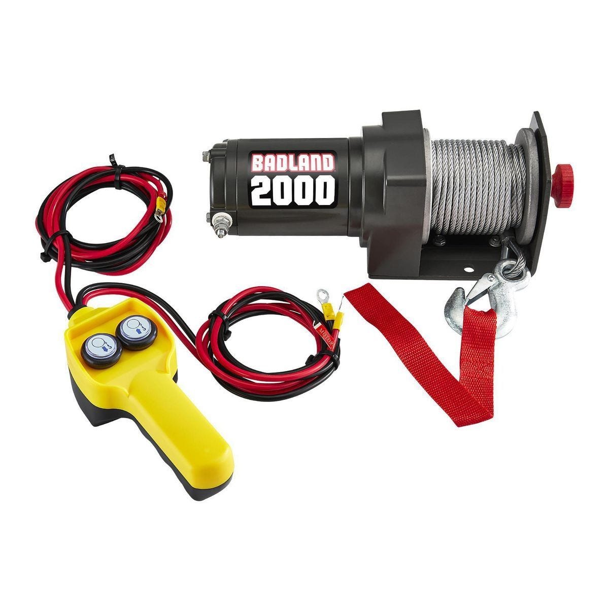 Malacate BADLAND para remolque de 2000 lb. Carga ATVs y equipo pesado con su cable de acero resistente. Incluye control remoto y protección térmica. Modelo…