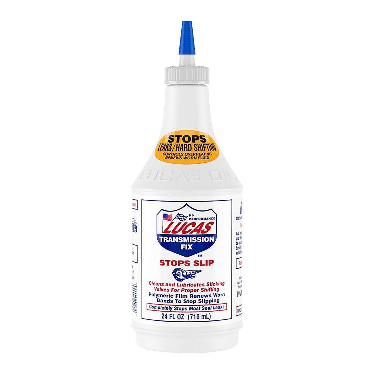 Aditivo Lucas Oil Transmission Fix de 24 oz. Detiene fugas, deslizamiento y cambios bruscos. Restaura y protege transmisiones automáticas y manuales. Modelo…