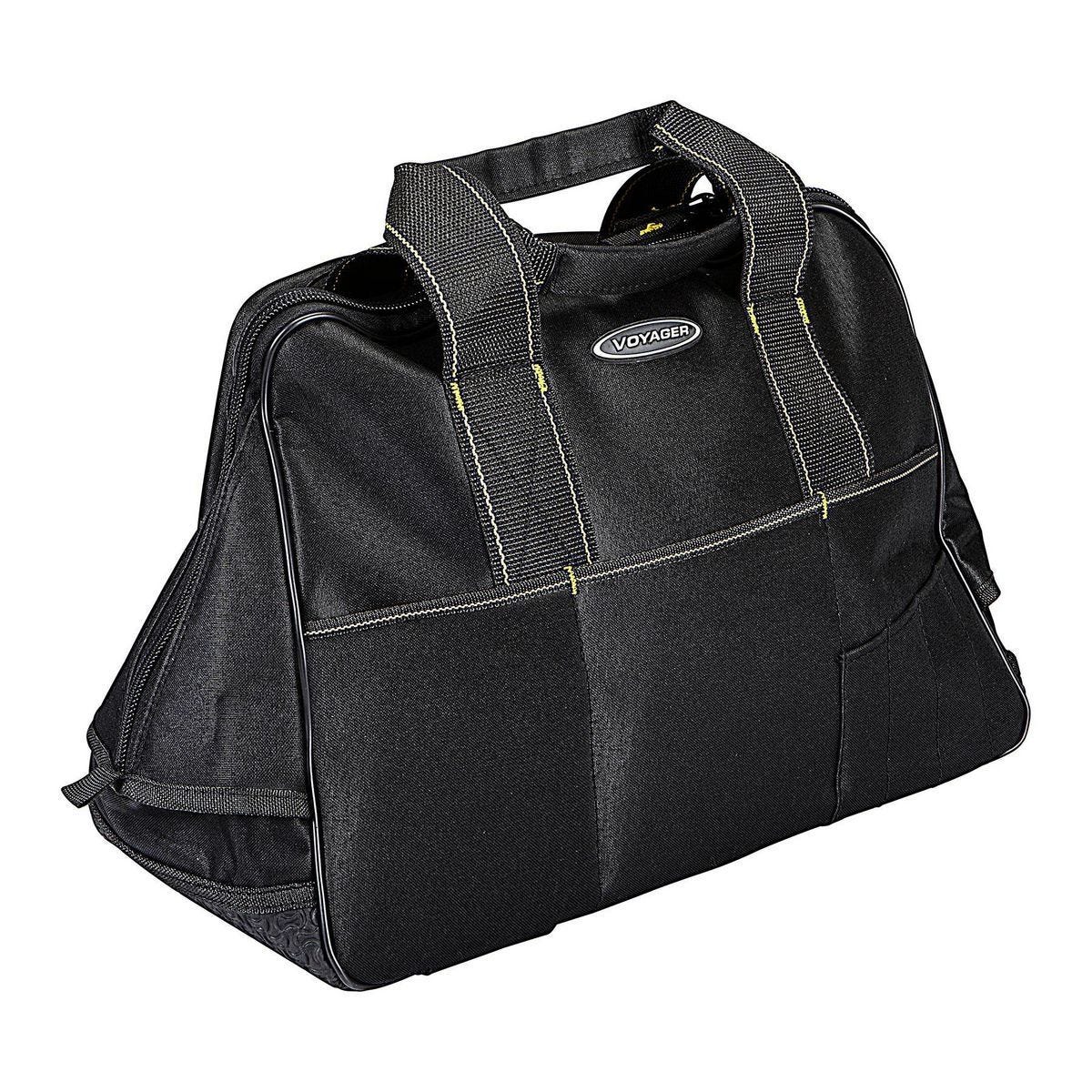 La bolsa para herramientas de mecánico VOYAGER es una solución de almacenamiento robusta y organizada. Diseñada con 25 bolsillos espaciosos, mantiene tus herramientas y suministros accesibles y en orden. Su construcción en poliéster duradero y base de goma resistente ofrece mayor estabilidad y protección. Incluye un compartimento principal con cremallera lo suficientemente grande para guardar cables de arranque. Ideal para mecánicos, técnicos y aficionados al bricolaje que necesitan transportar su equipo de manera eficiente. Con dimensiones de 16 x 8 x 12 pulgadas y una capacidad de carga de trabajo de 36 lb, es una opción confiable para el uso diario. Modelo 61468.