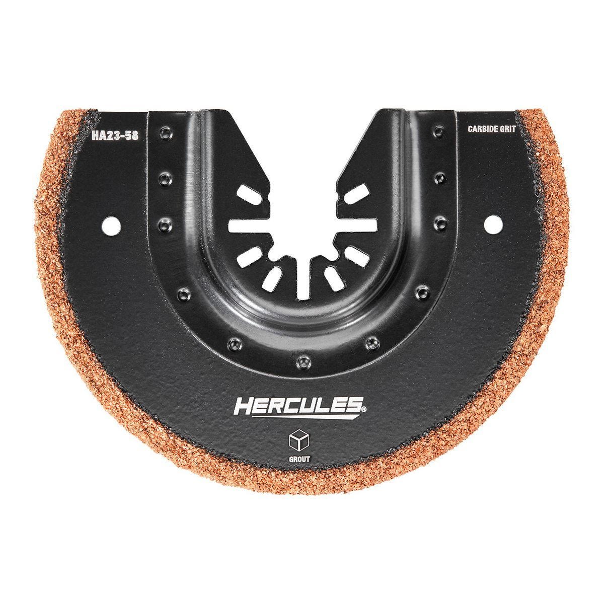 Hoja media luna HERCULES con grano de carburo de 3-5/8 pulgadas para remover lechada rápido. Compatible con multiherramientas DEWALT, MILWAUKEE y más. Modelo…
