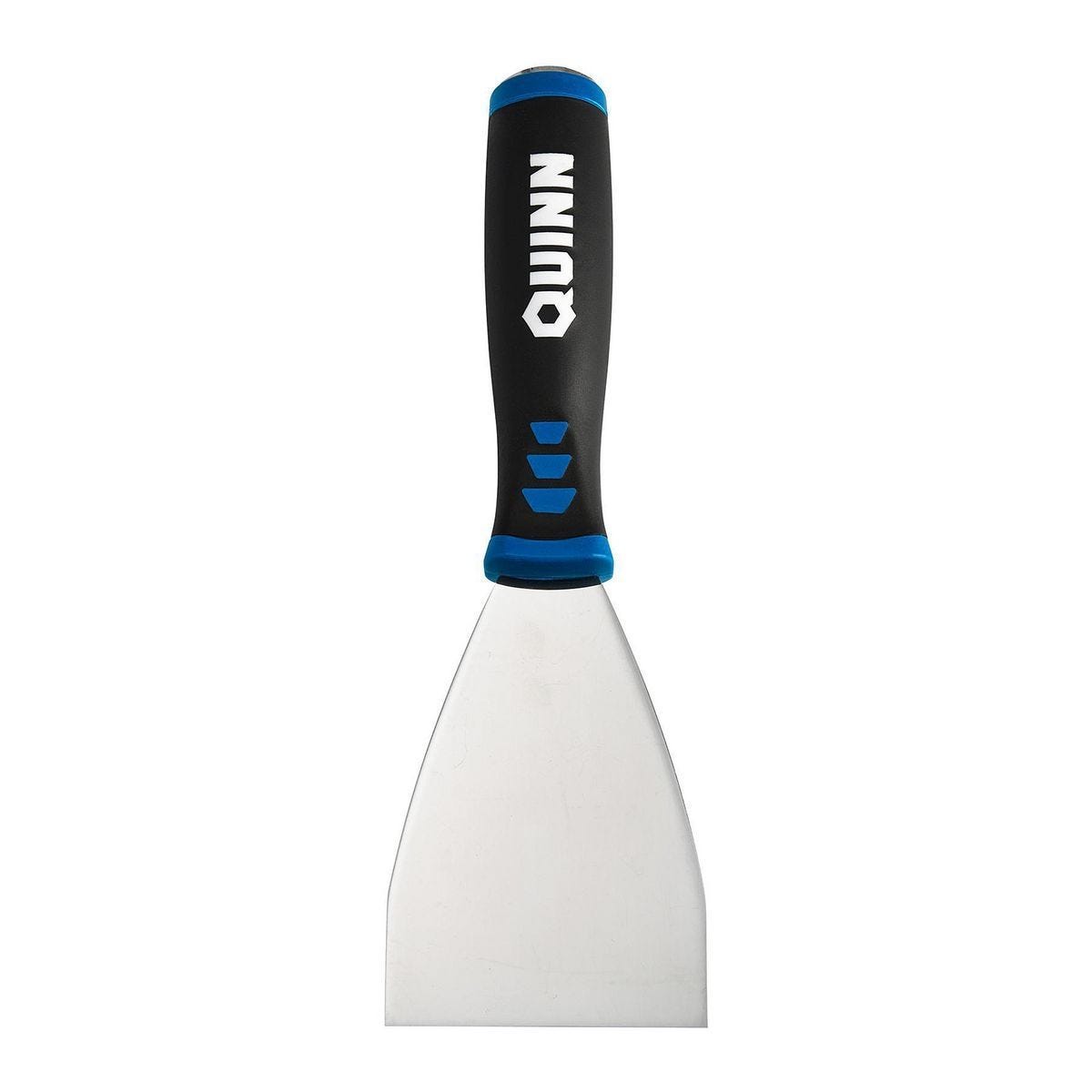 Raspador profesional QUINN de 3 pulgadas con hoja de acero inoxidable y mango antideslizante. Ideal para aplicar masilla y remover etiquetas. Modelo 57217.