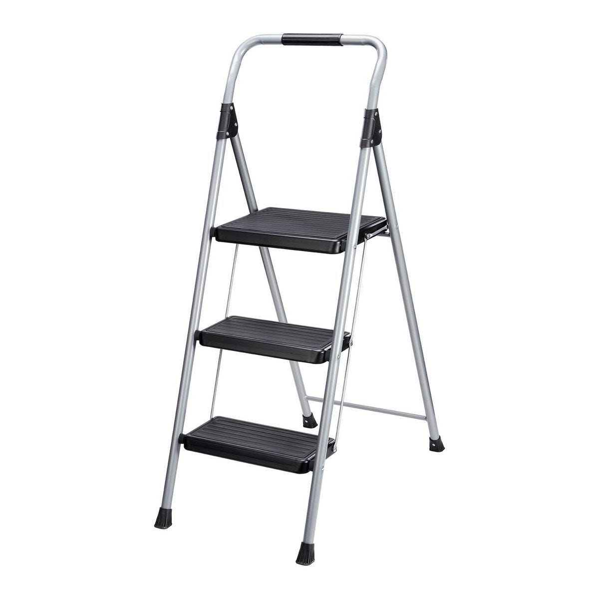 Banco plegable de acero Franklin de 3 escalones. Soportes 225 lb, plataforma ancha, pies antideslizantes y diseño compacto para fácil almacenamiento.