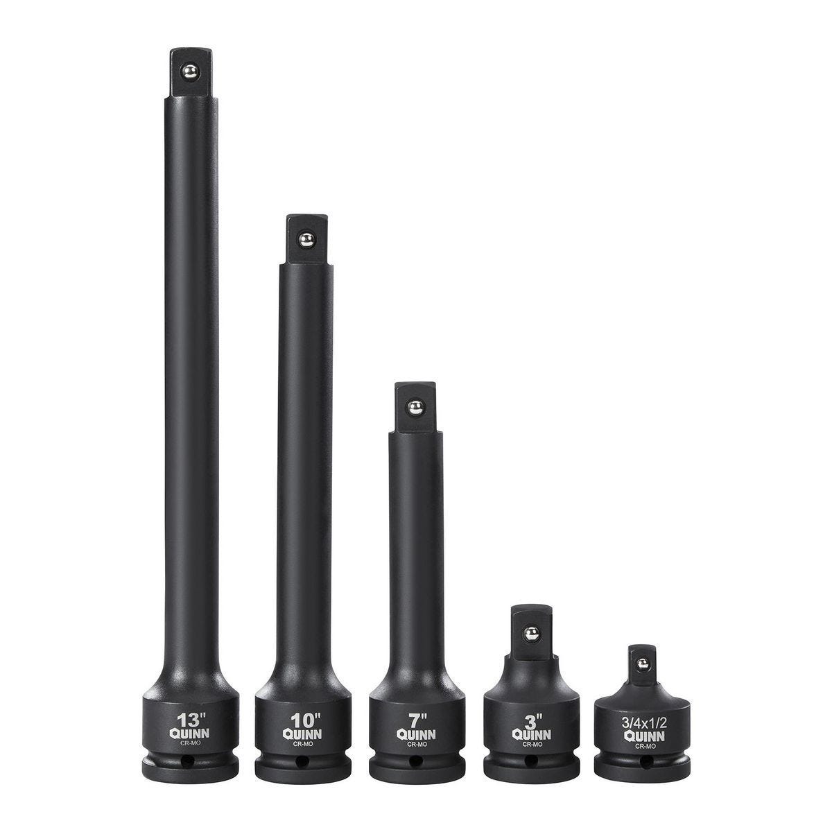 Juego QUINN de 5 piezas con adaptador y extensiones para sockets de impacto de 3/4 pulgada. Ideal para trabajos de alto torque en áreas de difícil acceso.…