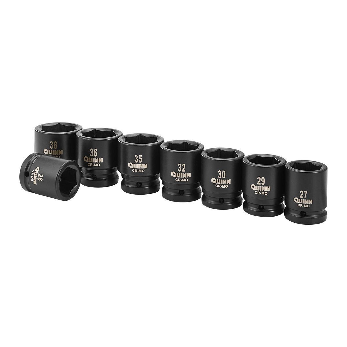 Juego de dados de impacto Quinn métricos de 3/4 pulgadas, 8 piezas. Acero cromo-molibdeno para máxima durabilidad con llaves de impacto. Incluye estuche.