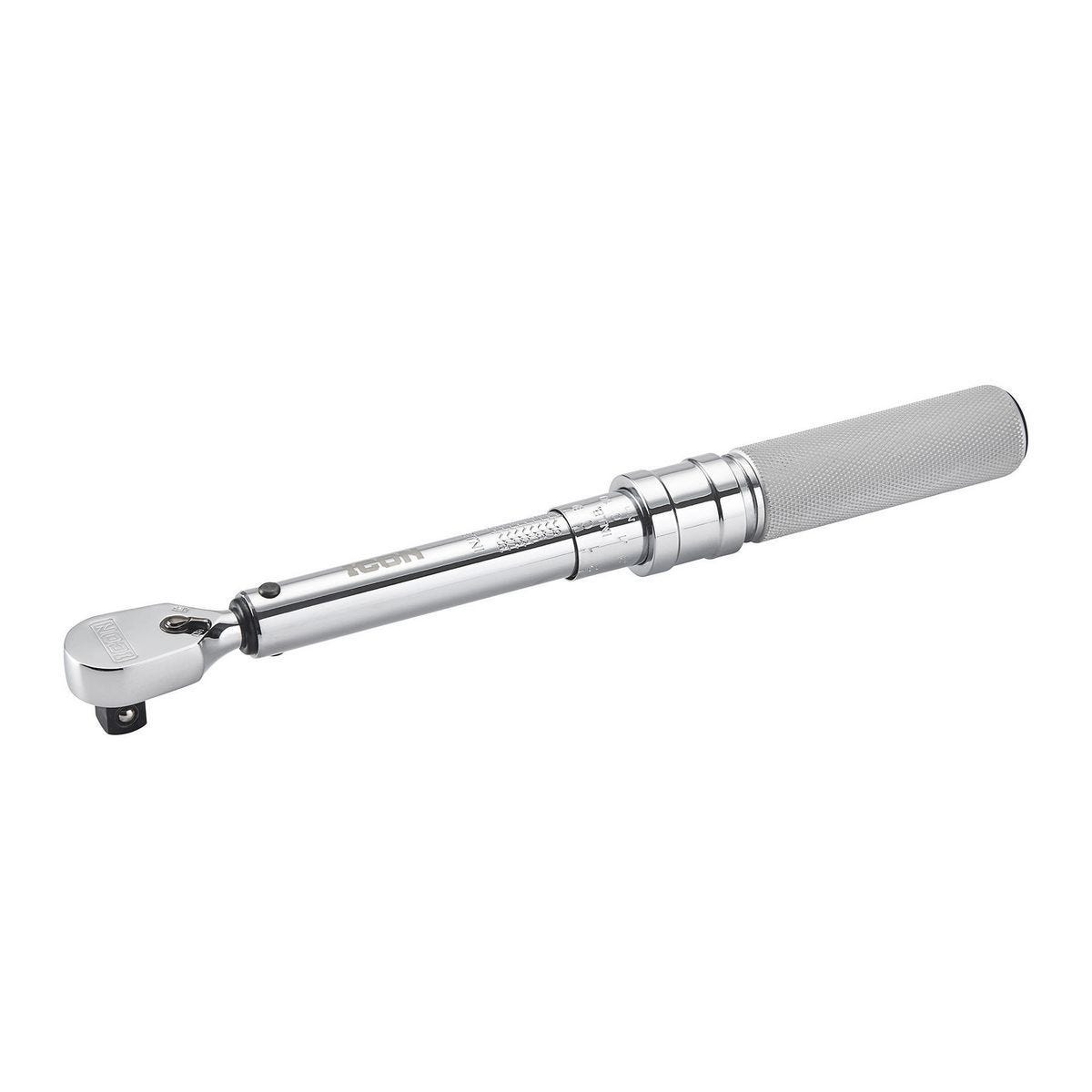 Llave de torque profesional ICON tipo click, 3/8 pulgadas, rango 40-200 lb-pulg. Precisión certificada, diseño compacto para espacios reducidos y garantía de…