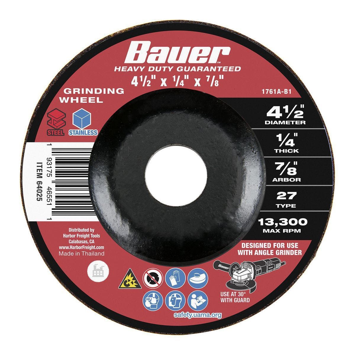 Rueda de desbaste BAUER para metal, grano 24 y 4-1/2 pulgadas. Desbasta acero y acero inoxidable con óxido de aluminio de larga duración y mínimo vibración.…