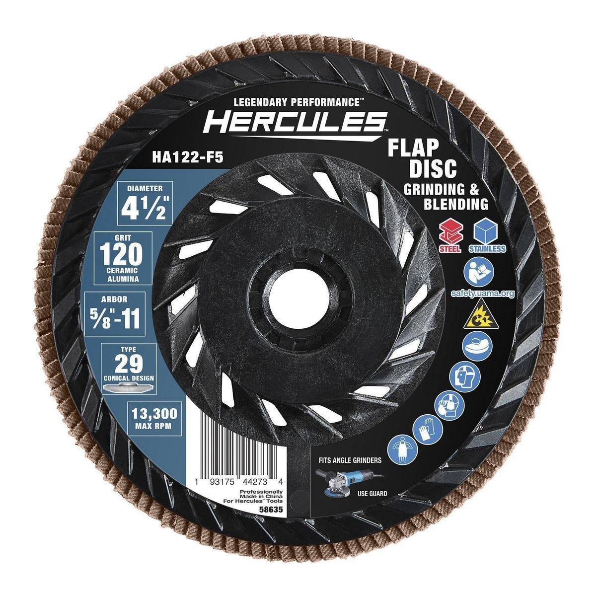 Disco de lija de tela HERCULES 4-1/2 pulg., grano 120, tipo 29, con respaldo plástico y grano cerámico | HA122-F5