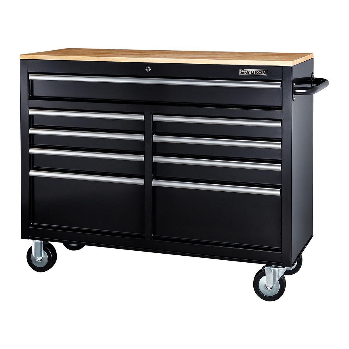 Gabinete móvil YUKON de 9 cajones, 46 pulgadas y 1200 lb de capacidad. Con tapa de madera sólida, correderas de balineras y ruedas industriales. Ideal para…