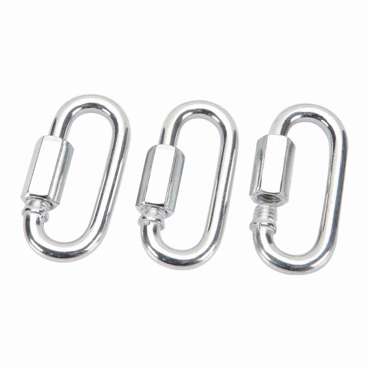 Conecta dos cadenas de forma rápida y segura sin necesidad de cortar o soldar con estas eslingas de unión rápida (quick links) de acero reforzado. Fabricadas por HAUL-MASTER, son ideales para reparaciones, trabajos agrícolas, amarre de carga y proyectos de construcción. Su construcción en acero de alta resistencia y acabado con recubrimiento de zinc ofrece mayor durabilidad y resistencia a la corrosión. Cada eslinga tiene un diámetro de 5/16 pulgadas y una capacidad de carga de trabajo de 1300 libras. El paquete incluye 3 unidades, proporcionando versatilidad y ahorro. Modelo 69061.