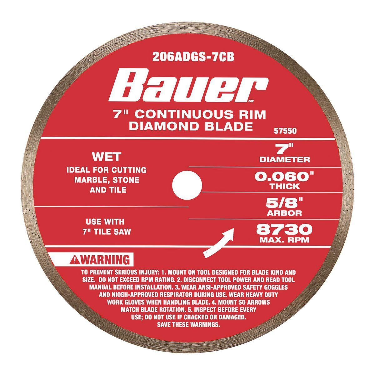 Disco de diamante BAUER de 7 pulgadas para corte húmedo. Ideal para cortar ladrillo, concreto, azulejos y piedra sin astillas. Modelo 206ADGS-7CB.