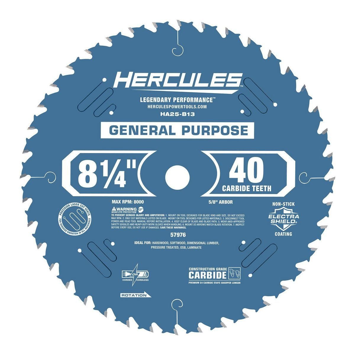 Hoja de sierra de mesa de propósito general HERCULES 8-1/4 pulgadas, 40 dientes | HA25-B13