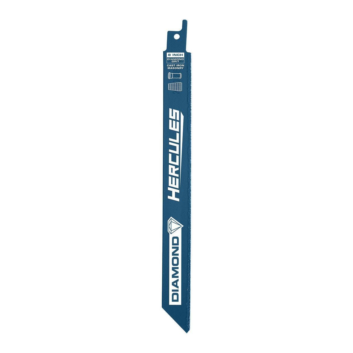 Hoja de sierra reciprocante HERCULES de 8 pulgadas con grano de diamante para cortar hierro fundido y mampostería. Larga duración y revestimiento antiadherente.