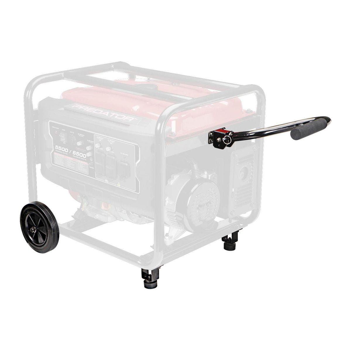 Kit de ruedas sin aire de 8 pulgadas para generadores Predator (4000-9000W). Añade portabilidad con maneral de acero y patas de hule. Fácil instalación.