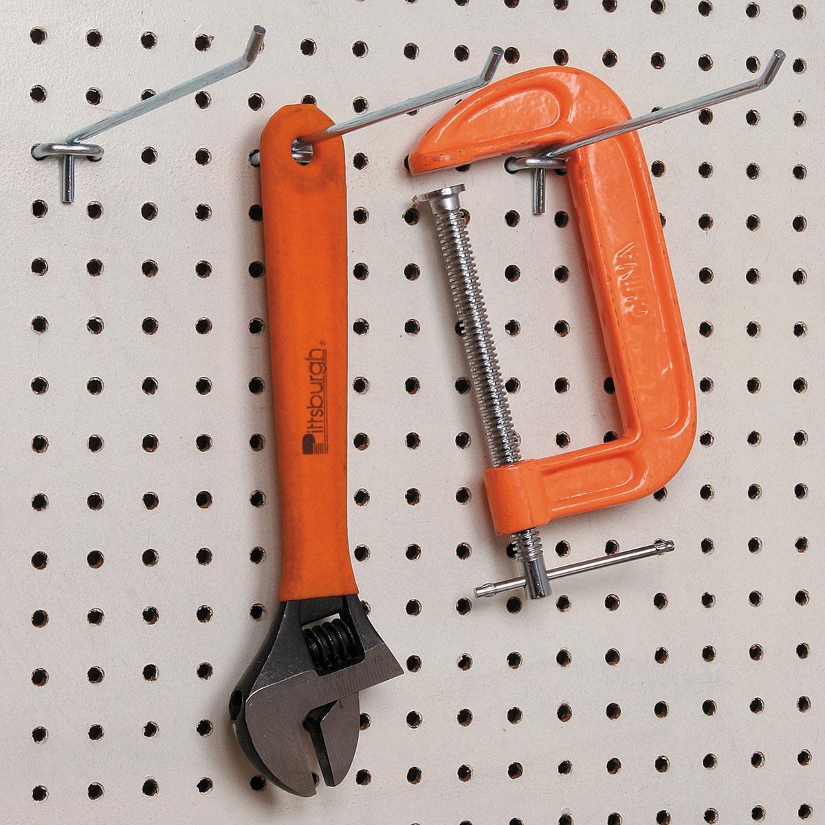 Ganchos rectos de acero zincado para panel perforado de 1/4. Organiza herramientas y equipo en tu taller o garaje. Paquete de 3 piezas. Modelo 65472.