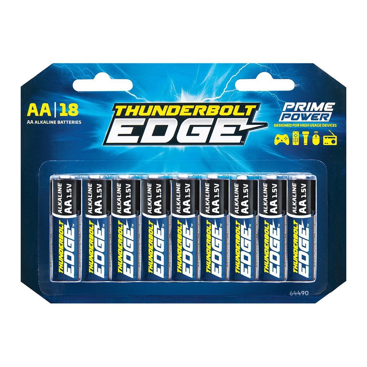 Paquete de 18 baterías alcalinas AA THUNDERBOLT EDGE PRIME POWER. Vida extra larga para controles remotos, juguetes, linternas y más. Modelo 64490.