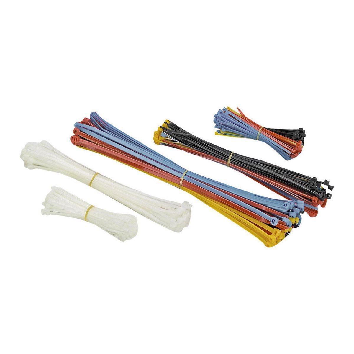 | Contents | (200) 4 in., 18 lb. load ties, (100 white, 100 colored); (100) 8 in., 40 lb. load ties (50 white, 50 colored); (50) 11 in., 50 lb. load ties, assorted colors |