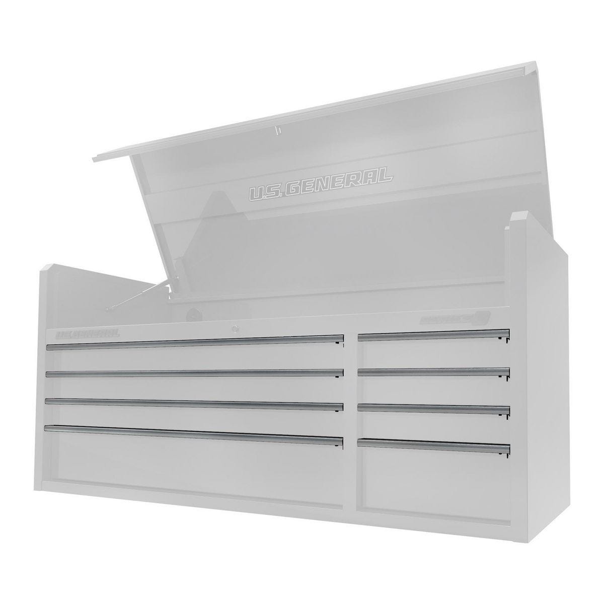 Kit de molduras cromadas de aluminio anodizado para la cajonera superior U.S. GENERAL Series 3 de 56 pulgadas. Fácil instalación y agarre seguro. Modelo 70649.