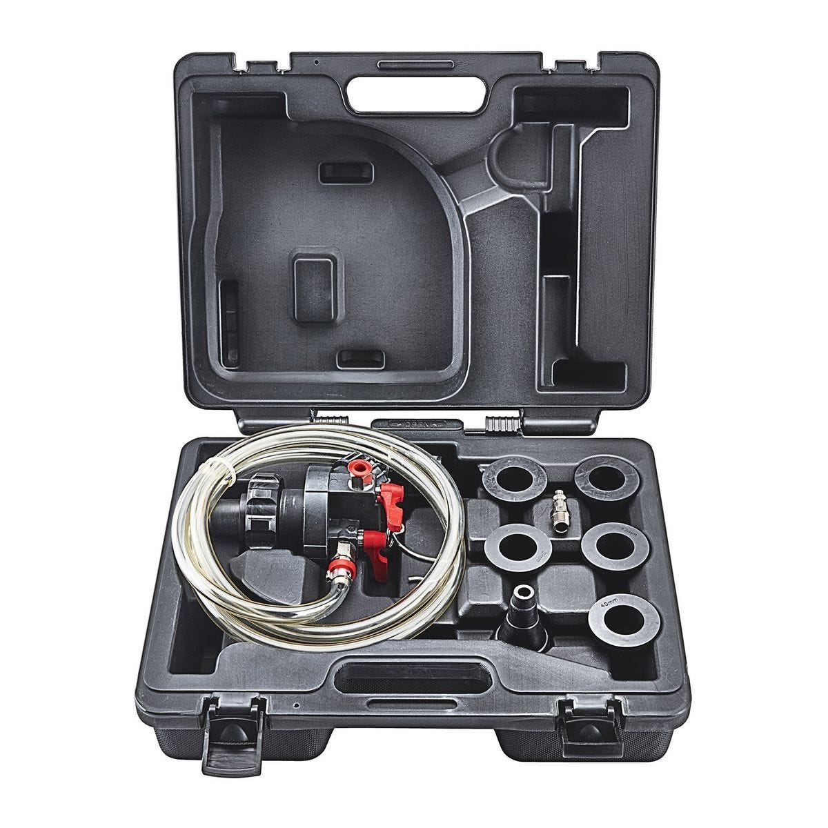 Kit profesional MADDOX MH-1B para probar y rellenar sistemas de enfriamiento automotriz. Incluye 6 adaptadores universales, facilita la purga y detección de…