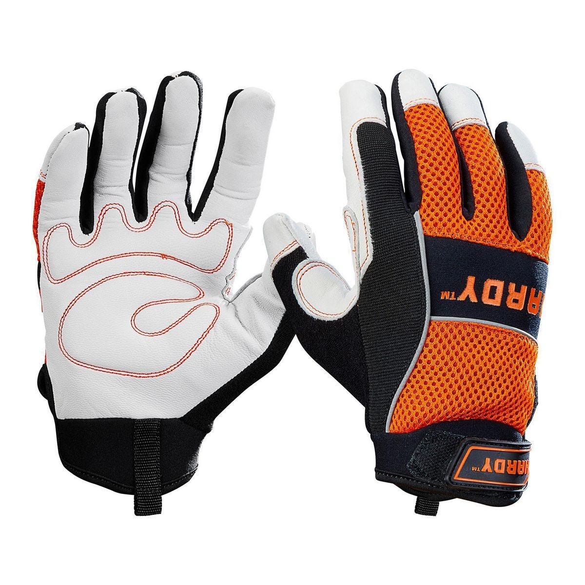 Los guantes de trabajo HARDY, modelo 57511, están fabricados con piel de cabra para ofrecer máxima durabilidad y protección en tareas al aire libre. Su palma de cuero resiste abrasiones y materiales ásperos, mientras que la espalda de malla de nylon permite una ventilación óptima incluso en días calurosos. Incluyen nudillos acolchados con neopreno para protección adicional, una tira ajustable en la muñeca para un ajuste seguro y una franja absorbente en el pulgar y dorso para limpiar el sudor. Ideales para jardinería, construcción, manejo de materiales y cualquier trabajo que requiera agarre firme y comodidad prolongada.
