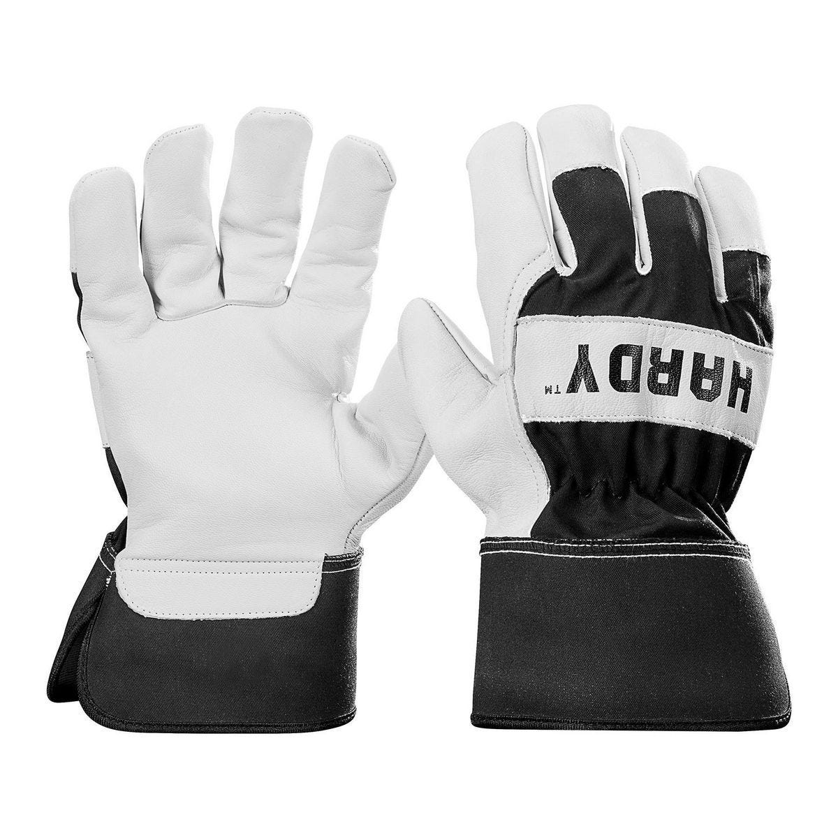 Los guantes de trabajo HARDY están fabricados en genuina piel de cabra split, ofreciendo una mayor resistencia a la abrasión y mejor destreza que el cuero de vaca. Ideales para trabajos pesados como construcción, mampostería y labores agrícolas. Cuentan con puntos de refuerzo en el pulgar, índice, yemas de los dedos y nudillos para protección extra. Su puño de seguridad extendido cubre y protege la muñeca y el antebrazo, mientras que el forro interior de felpa suave brinda comodidad y aleja la humedad. El modelo 70259 es de talla única para un ajuste universal.