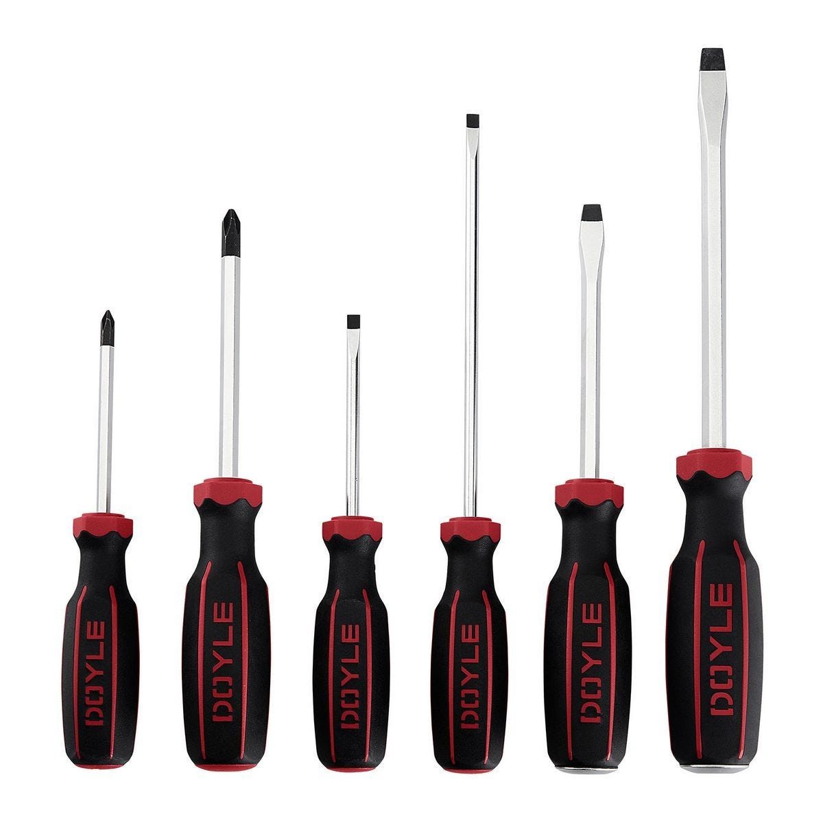 Juego de 6 desarmadores pesados DOYLE. Acero de alta resistencia, protección contra óxido y puntas de precisión para un agarre perfecto. Ideal para trabajos…