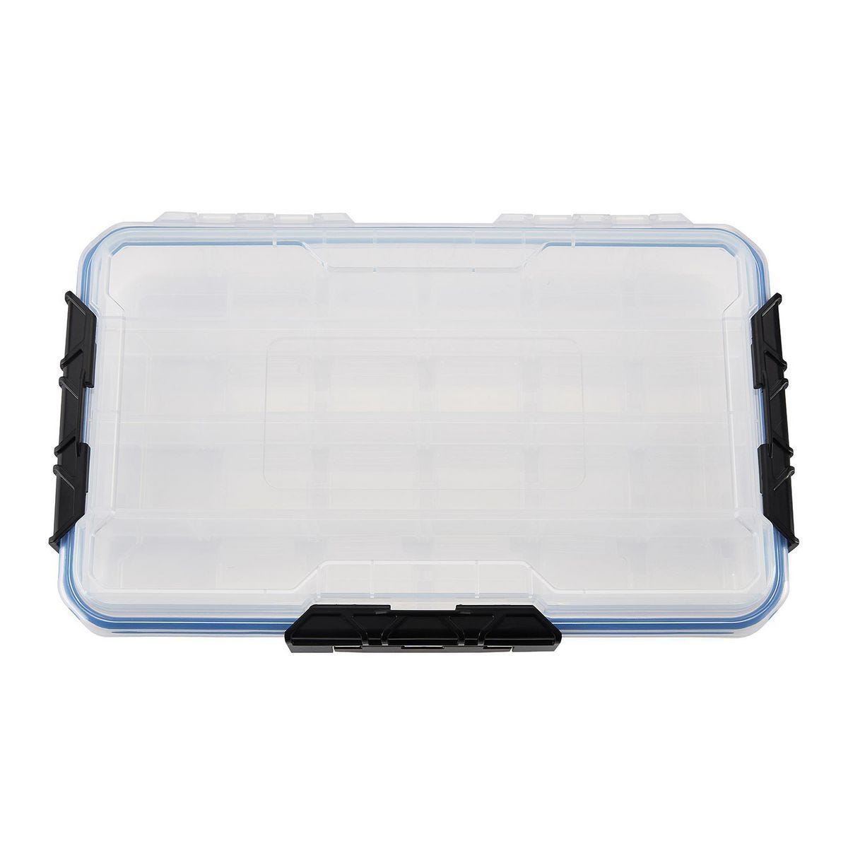 Contenedor organizador grande y resistente al agua (IP55) de STOREHOUSE. Con 24 compartimentos ajustables y diseño transparente. Ideal para taller, pesca o…
