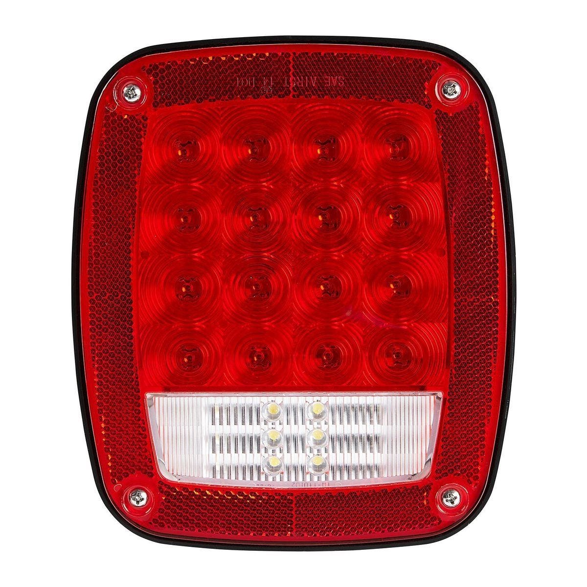 La luz trasera LED rectangular universal KENWAY es una solución completa de iluminación para remolques, botes y vehículos utilitarios. Este modelo 58213 integra 6 funciones esenciales en una sola unidad: luz de freno, luz de posición trasera, direccional, luz de retroceso, reflector y luz para placa. Cuenta con 38 LEDs ultrabright que ofrecen una excelente visibilidad y una vida útil de hasta 100,000 horas. Su construcción es resistente al agua y sumergible gracias a su lente y carcasa sellados por soldadura sónica, haciéndolo ideal para remolques de botes o uso en todo clima. La instalación es sencilla con su soporte de montaje universal y hardware incluido, compatible con sistemas eléctricos de 12V DC. Cumple con las normas DOT para una circulación segura y legal.