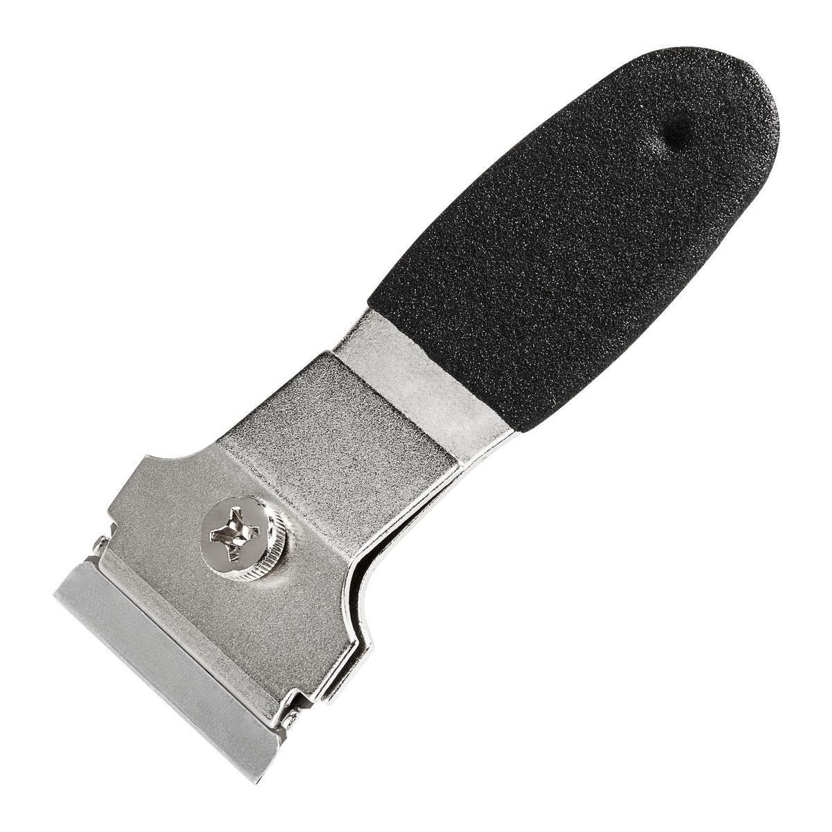 Raspador mini con cuchilla de afeitar para remover pintura, pegamento y etiquetas. Mango ergonómico y cabeza de 25° para áreas confinadas. Modelo 98039.