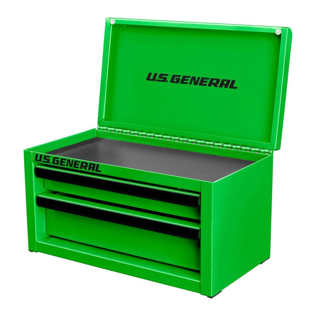 Caja de herramientas de acero mini U.S. GENERAL, color verde. Organiza hasta 10 lb de herramientas en dos cajones con correderas suaves y acabado resistente.…
