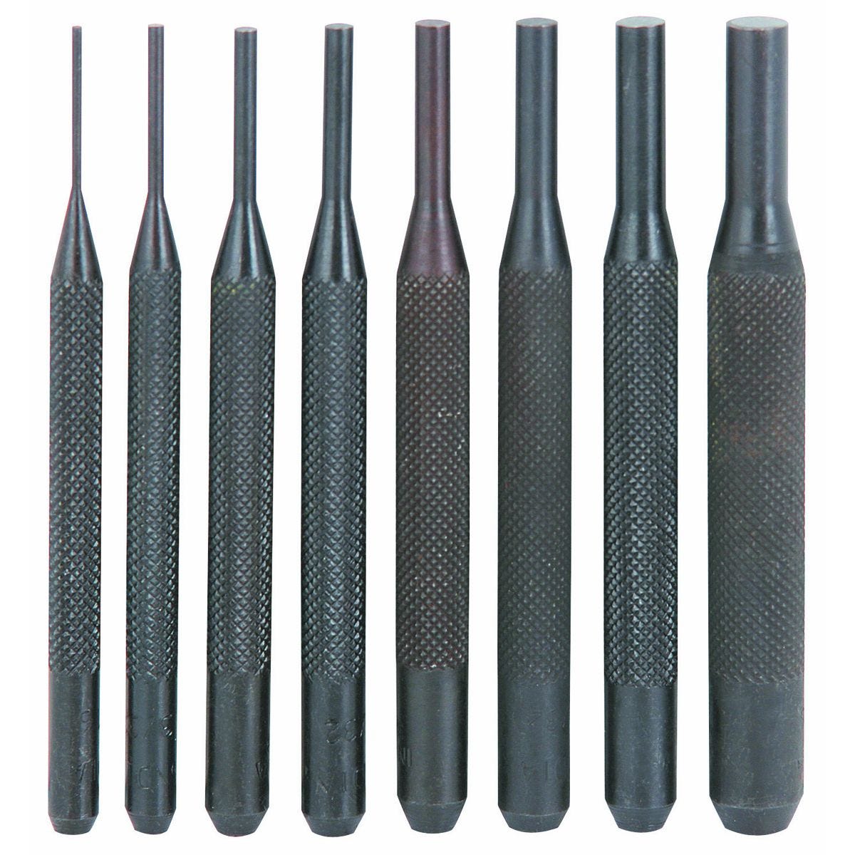 Juego de punzones PITTSBURGH de 8 piezas en acero al carbono. Ideal para extraer pasadores en espacios reducidos. Acabado anti-corrosión y mangos estriados.
