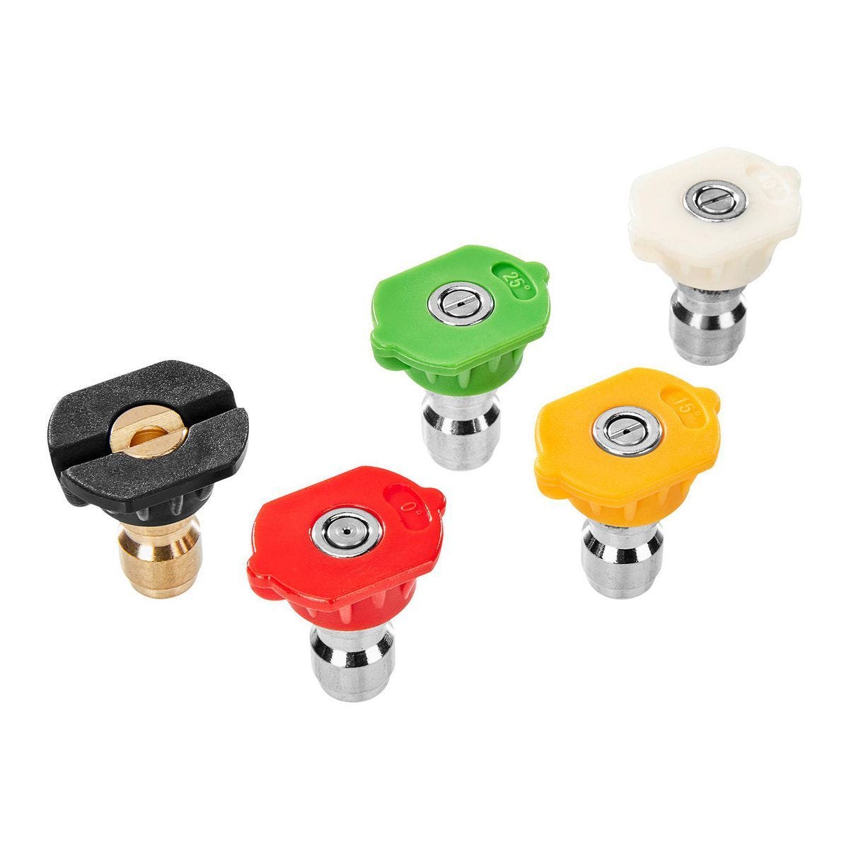 Kit de 5 boquillas de conexión rápida para hidrolavadora. Incluye chorros de 0°, 15°, 25°, 40° y para jabón. Compatible con equipos de hasta 2300 PSI. Modelo…