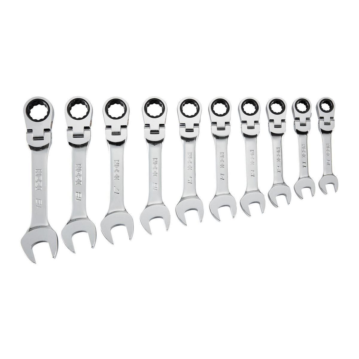 Juego profesional de llaves combinadas stubby con cabeza flexible y trinquete métrico, 10 piezas | WRSTFM-10